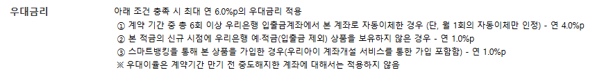 아래 우대 조건 충족 시 최대 연 6.0%p 추가 혜택 제공:
