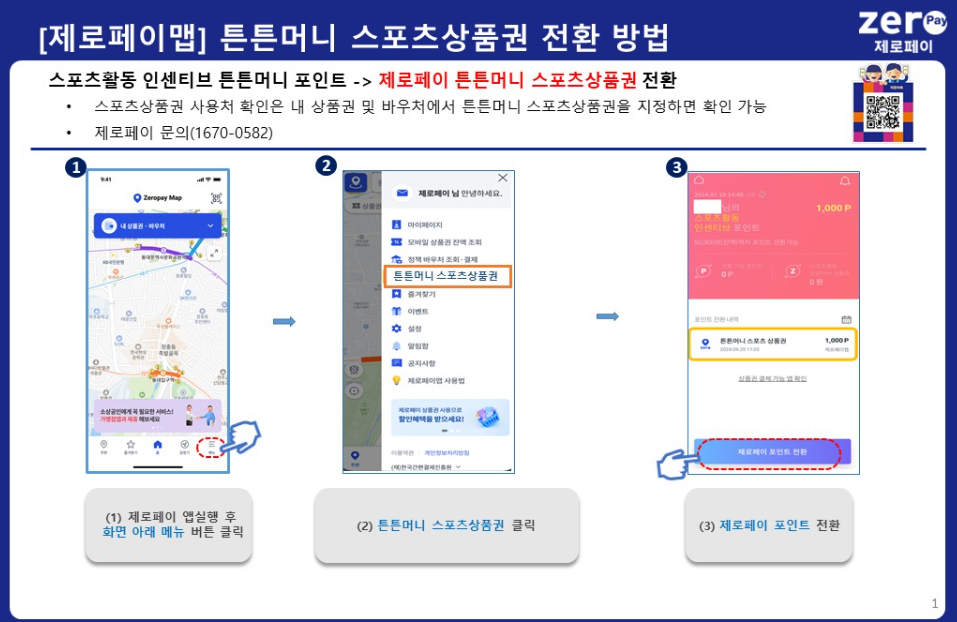 특히 요즘은 제로페이와 연계된 Zmap 앱을 통해 스포츠상품권으로 머니를 전환할 수도 있어 사용처가 점점 넓어지고 있어요.