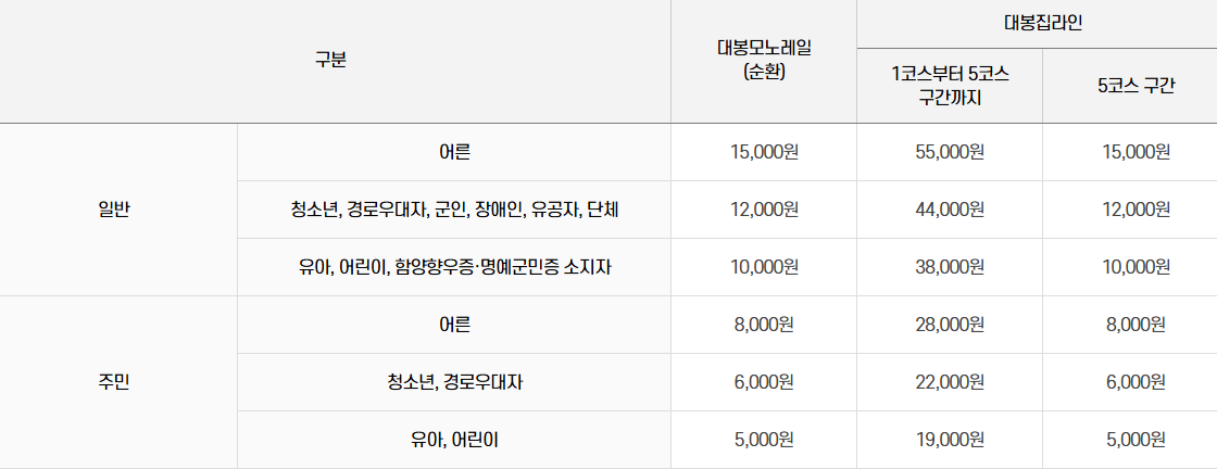 - 이용 요금: 대인 15,000원 / 소인 12,000원 (2025년 기준)