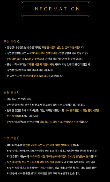 - 일요일 공연 ➜ 전일(토요일) 오전 11시까지